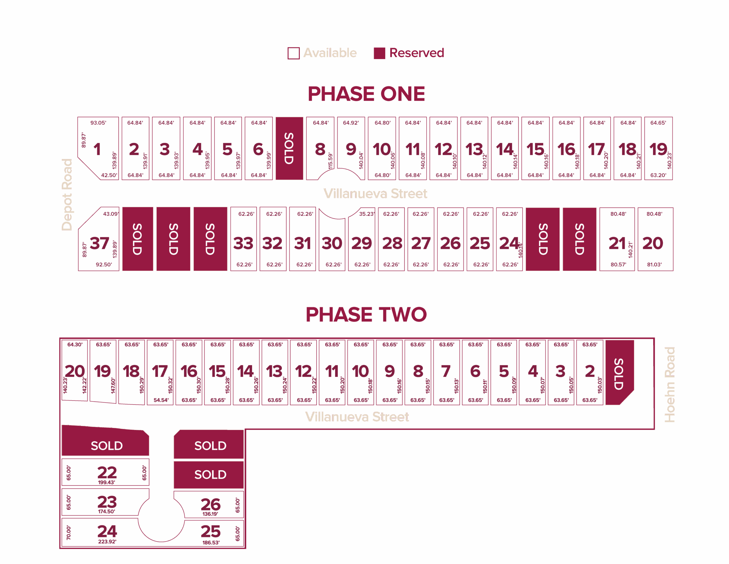 With only a few dozen lots available in two phases, this neighborhood will sell fast. Each lot allows you to build your own custom Villanueva Home in an ideal location. Reserve your lot today!